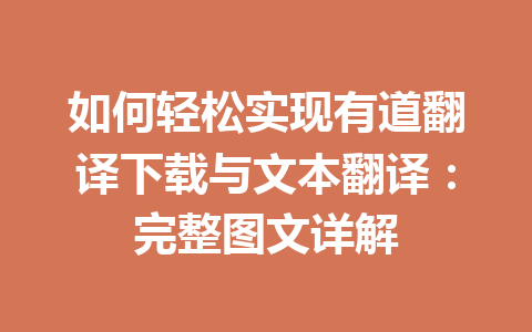 如果你寻找一种简单方便的方法来实现有道翻译的下载与文本翻译,那么本篇文章将为你提供完整的步骤解析和图文指导。通过多种方案和实现方式的详细介绍,你将能轻松上手这款广受欢迎的翻译工具。